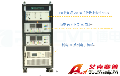 測試系統包括被測件鋰離子電池、NIPXIe-8133控制器、功率接口(北京博電自主開發的PI系列模塊化功率接口)、電子負載、充放電信號轉換板。