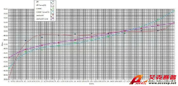 圖4.2 磷酸鐵鋰,三元鋰,鉛酸電池SOC曲線