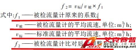 式中: f 1被檢流量計原來的系數;v被! ! ! 被檢流量計的平均流速, 單位: m3/h;標準流量計的平均流速, 單位: m3􀀁h;f 2 ! ! ! 被檢流量計比對后的調整系數。