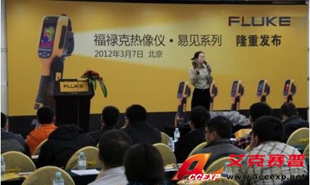 在談及易見系列的產品推廣時,紅外熱像部的產品經理徐小姐向來賓分階段的介紹了今年福祿紅外熱像儀易見、睿見系列的產品定位和市場發展趨勢,而且通過實際應用案例分析了福祿克紅外熱像儀產品在電力、制造業、新能源、自動化、建筑等行業和各種特殊環境中表現出來的優越性能和技術優勢。