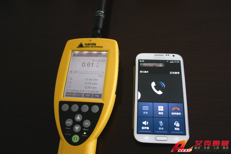 圖為電磁測試儀(m.zzhbled.com.cn/product/gaosiji/)測試電話輻射強度