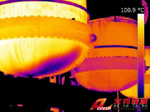 在石油化工企業(yè)中,許多反應(yīng)釜壓力容器處在高溫高壓條件下工作。為了保護(hù)壓力容器外殼在高溫狀態(tài)下免遭內(nèi)部工作介質(zhì)的腐蝕,往往在高溫壓力容器內(nèi)部加上防腐和隔熱內(nèi)襯材料。然而這些襯里在生產(chǎn)過(guò)程中長(zhǎng)期受高溫高壓高速流動(dòng)介質(zhì)的沖刷,極易損壞。若襯里發(fā)生鼓包、裂紋、掏空、脫落等情況,一方面介質(zhì)可直接腐蝕壓力容器器壁,另一方面襯里熱阻減小,壁溫升高,會(huì)使器壁鋼材強(qiáng)度下降,從而導(dǎo)致裝置變形、傾斜甚至倒塌。采用紅外熱成像技術(shù)在壓力容器的運(yùn)行時(shí)對(duì)壓力容器進(jìn)行在線檢測(cè),可以及早發(fā)現(xiàn)襯里的損傷,及時(shí)采取補(bǔ)救措施,排除生產(chǎn)過(guò)程中的安全隱患。