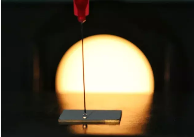 接觸角測量 :物和無機化合物相結合制備具有超疏水性的涂層材料,當接觸角>150°時,證明材料具有超疏水效應,小水滴就會很容易在表面滾動。