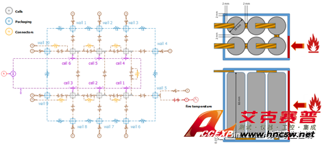 在單體熱失控分析的基礎上,可進一步分析電池包內部熱失控導致的熱蔓延,分析改進電池包內部的空間設計以控制單個電芯熱失控可能引發的熱蔓延。