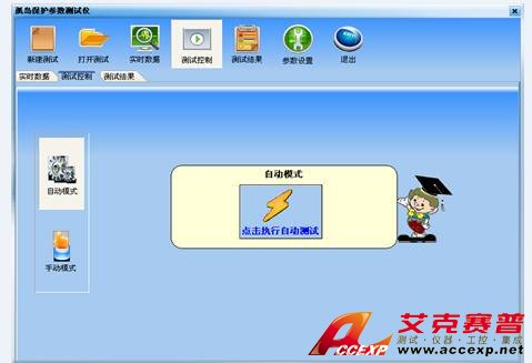 測試模式說明:自動模式與手動模式。自動模式可自動記錄參數(shù)值,在滿足基頻電流值小于1%額定電流值后,切斷觸發(fā)開關(guān),自動記錄顯示3秒的波形,自動計算并直接顯示出保護(hù)時間。手動模式下,需要手動切斷開關(guān),在出現(xiàn)保護(hù)波形時Hold(保持)在軟件界面上,再完成保護(hù)時間的測量。