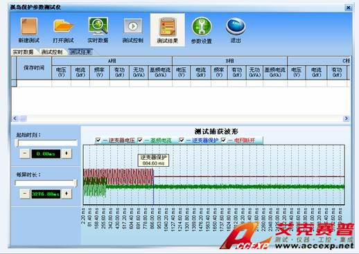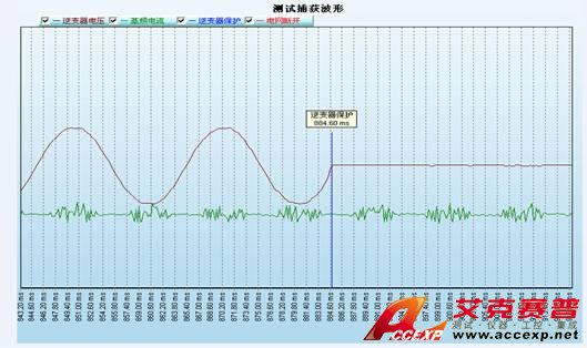 如圖所示,可自動記錄波形進(jìn)行孤島保護(hù)時間的測量。