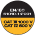 EN/IEC 61010-1:2001; 1000V CAT III, 600V CAT IV