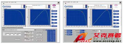 型號62150H-600S/1000S直流電源具有可模擬太陽能板的I-V曲線,使用者可編輯多種不同溫度及照度下的I-V曲線及特殊有遮罩下的曲線,此可應(yīng)用于太陽能逆變器的最大功率追蹤(MPPT)效能測試。如圖示A&B,使用者可非常容易地使用SoftPanel軟體編輯I-V曲線后下載至單機(jī)內(nèi)記憶體,并且可即時輸出&量測顯示太陽逆變器的最大功率追蹤狀況及記錄。