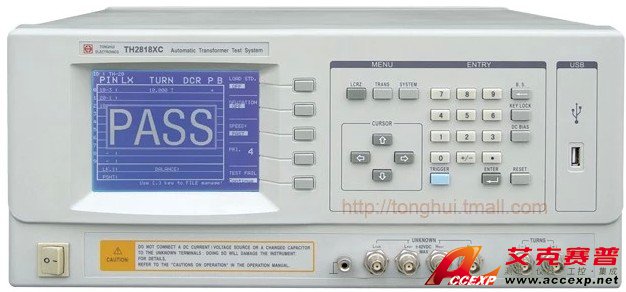 同惠TH2818XC綜合變壓器測試儀是專用于各種電子變壓器品質檢驗的多功能、自動化的變壓器綜合測試儀。同惠TH2818XC綜合變壓器測試儀可提供20Hz-300kHz的測試頻率,變壓器掃瞄測試涵蓋了變壓器的各種低壓參數,同惠TH2818XC綜合變壓器測試儀包括電感L、漏感量Lk、圈數比Turn-ratio、直流電阻DCR、阻抗Z、線圈間分布電容C等主參數,品質因素Q、等效串聯電阻ESR、相位Ps等副參數,以及引腳短路檢查等。