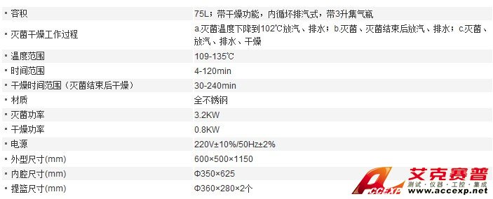 博迅YXQ-LS-75G壓力蒸汽滅菌器技術規格:
