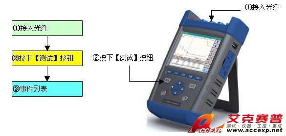 A6418的自動測試功能使得用戶無需了解更多的有關該儀器操作的細節,測試步驟變得非常簡單,只需要接入光纖、點擊【測試】按鈕即可,儀器會自動設置最佳測試條件并最終給出準確的測試結果,如測試曲線和事件列表等。