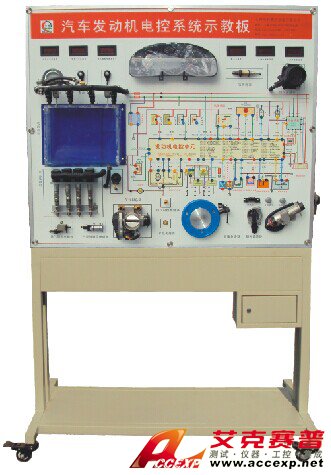 1、面板上繪有完整的電控系統原理圖。設有檢測端子,可通過儀器儀表檢測傳感器,執行器等各種信號參數如電壓、電 阻、頻率等。操縱開關及按鈕,可真實演示發動機電控系統(點火與噴油)的工作過程。