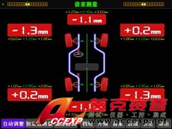測量系統:外傾角設計了以車輪傾斜和顏色的變化來區分;總前束、獨立前束設計了以車輪的變動和顏色來區分 |