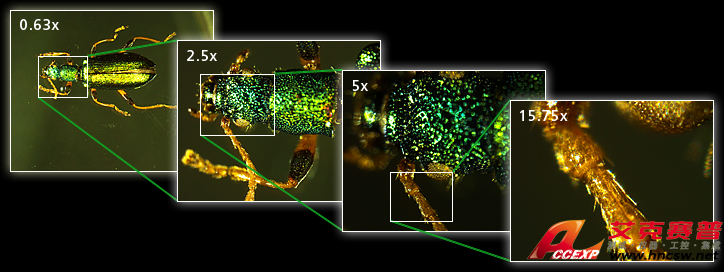 自動對接變倍(Auto Link Zoom, ALZ)功能可在切換物鏡后使視野保持一致。此功能可在進(jìn)行完整個體拍攝時從宏觀到微觀提供平滑的放大,即您在切換物鏡后系統(tǒng)自動調(diào)整放大倍數(shù)使您看到的圖像與之前一致。