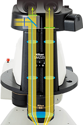 SMZ25/SMZ18為首個采用復(fù)眼熒光照明附件的體式顯微鏡。這一創(chuàng)新設(shè)計保證了在低倍率下明亮與均勻的照明,獲得無與倫比的均一明亮的大視野熒光圖像。
