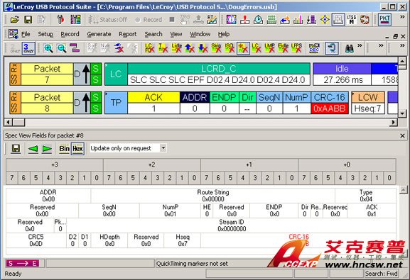 LeCroy力科 Voyager M310P USB協(xié)議分析儀可以檢測(cè)并標(biāo)記實(shí)際協(xié)議錯(cuò)誤,包括50多種不同的USB問(wèn)題和15種獨(dú)特的PD錯(cuò)誤情況。在較低的層,將自動(dòng)驗(yàn)證訓(xùn)練序列,標(biāo)頭字段,鏈路層握手和時(shí)序參數(shù)。在SCSI和USB事務(wù)層,檢查各個(gè)交換的完整性。Spec-View以十六進(jìn)制或二進(jìn)制顯示標(biāo)題字段,并以紅色標(biāo)記錯(cuò)誤。