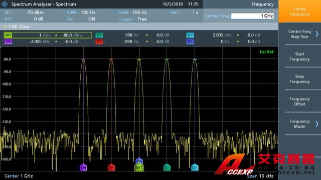 R&S FPC1500 可以在獨立模式下使用集成式信號源。由于具備這種獨特功能,R&S FPC1500 可用作連續波 (CW) 信號發生器。信號源可用作本振信號以進行混頻器測量,或用作輸入信號以進行放大器增益測量。