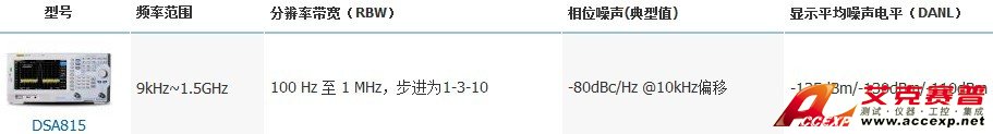 簡介:RIGOL普源DSA815是一款9 kHz~1.5GHz 頻寬的經濟型便攜式頻譜分析儀,RIGOL DSA815為體積小,重量輕,高性價比的便攜式頻譜 分析儀,普源DSA815誘人的價格必將極大地降低用戶在研發、生產和維修各環節的經費,由于...