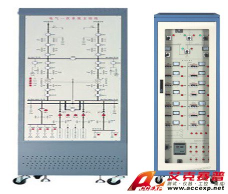 采用操作控制屏加控制柜的方式,均為固定式結(jié)構(gòu),操作控制屏為實(shí)訓(xùn)一次線路,從上到下依次為總降變電所、低壓配電所及建筑用電負(fù)荷,控制柜為二次控制回路,裝有備用電源自動(dòng)投入裝置、儀表、無(wú)功自動(dòng)補(bǔ)償控制器、常規(guī)繼電器等。