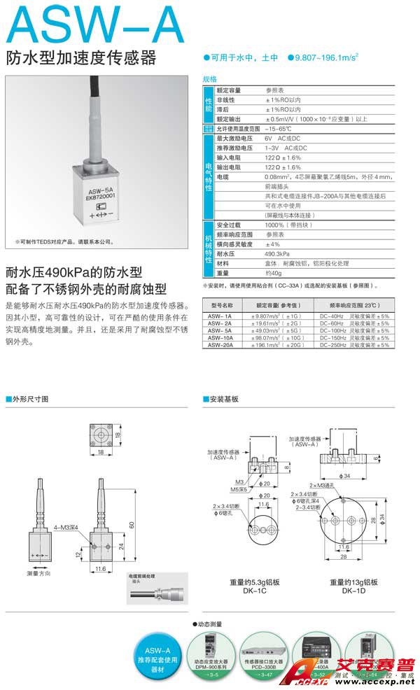 簡介:KYOWA ASW-A 防水型加速度傳感器