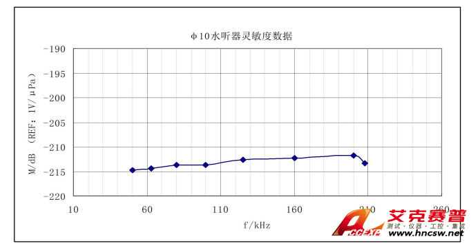簡介:Accexp 10標(biāo)準(zhǔn)水聽器經(jīng)過計(jì)量后可作為寬帶標(biāo)準(zhǔn)水聽器,靈敏度在-211dB~-215dB 之間,在 20Hz~200kHz之間靈敏度曲線非常平坦,所以也可作為接收用于采集寬帶信號,內(nèi)部沒有前置放大器,使用較為方便。 技術(shù)參數(shù): 使用頻...