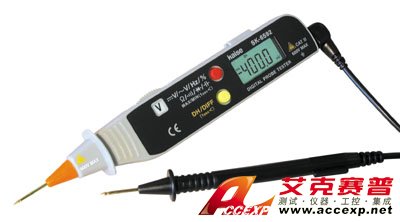 筆式,一體型、高精度、多功能、人性化設計,顯示:4000字節,文字高8MM。最大值/最小值測量,自動關機,全量程保護,量程選擇有手動和自動兩種。在測量高精度場合,選用手動量程,最高精度可達±0.2% 。在狹小地方或密集的配電裝置和電器修理中,使用十分方便。