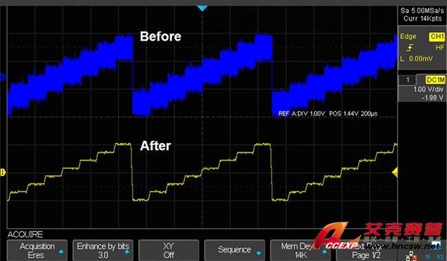 ERES采集模式能有效提高信噪比,并且不像平均模式那樣依賴于信號的周期性和觸發點的穩定。