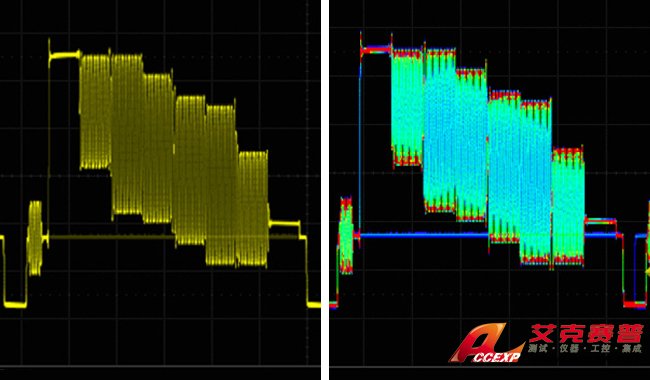色溫顯示以顏色的冷暖程度表示波形的出現概率,色度值越暖,波形出現概率越高。
