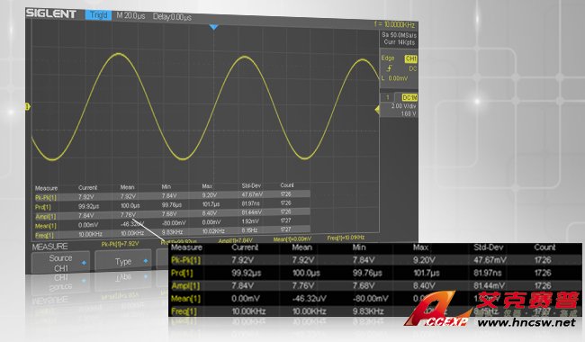 鼎陽SIGLENT SDS1102X+熒光示波器支持37種參數自動測量和統計。