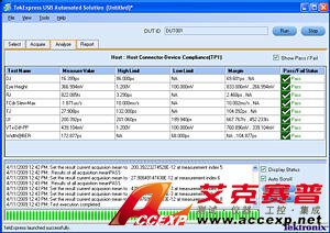 TekExpress USB3.0自動(dòng)測(cè)試軟件(選項(xiàng)USB-TX)- TekExpress USB 3.0提供了自動(dòng)、簡(jiǎn)單和高效的測(cè)試方法,滿足SuperSpeed 通用串行總線(USB)規(guī)范要求的USB3.0 發(fā)送端r、接收端、host 和 device 一致性測(cè)試。該應(yīng)用程序?qū)y(cè)試自動(dòng)化,包括根據(jù)被測(cè)件 類型、測(cè)試類型、測(cè)試點(diǎn)和使用的探頭選擇合適的CTLE和參考通 道模擬濾波器、測(cè)量項(xiàng)。另外,USB-TX和DPOJET配合使用,可 以用于調(diào)試和進(jìn)一步檢定USB3.0 方案