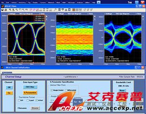 SDLA - 串行數(shù)據(jù)鏈路分析(選項(xiàng)SLE 和選項(xiàng)SLA)-能夠仿真串 行數(shù)據(jù)通道,反嵌夾具或其它網(wǎng)絡(luò),增加或去掉發(fā)射機(jī)均衡(去加 重/ 預(yù)加重)。選項(xiàng)SLA 在波形處理中增加了FFE 和DFE 均衡和自 適應(yīng)均衡器訓(xùn)練功能。DPOJET 可以對(duì)得到的波形進(jìn)行高級(jí)測(cè)量 和抖動(dòng)分析。