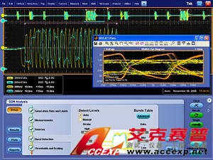 另外,示波器采集的數(shù)據(jù)可以使用專用的電子表格工具欄導(dǎo)入Microsoft Excel,或使用Word工具欄來(lái)生成用戶報(bào)告,這些工具都隨 DPO/DSA7/MSO70000 產(chǎn)品提供。