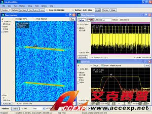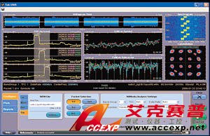 當(dāng)需要對(duì)射頻或者基帶信號(hào)進(jìn)行矢量信號(hào)分析時(shí),可選的SignalVu應(yīng)用程序提供了時(shí)間相關(guān)的多域(頻率、時(shí)間、相位、調(diào)制)分析能力。SignalVu測(cè)量和示波器的時(shí)域采集/觸發(fā)完全相互關(guān)聯(lián)。時(shí)域事件,如給射頻子系統(tǒng)發(fā)的命令,可以被用做觸發(fā)事件,此時(shí)子系統(tǒng)中射頻信號(hào)可以在頻域顯示中看到。