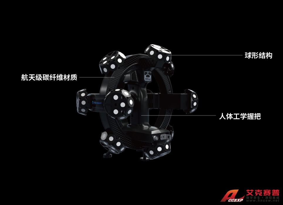 航天級碳纖維材質掃描儀i-Scanner,球形設計結構,堅固耐用;搭配一體式人體工程學控制握把,便于長時間單手靈活移動掃描儀,讓技術人員在不同的測量場景中,更加敏捷自如,帶來人機合一的掌控感。