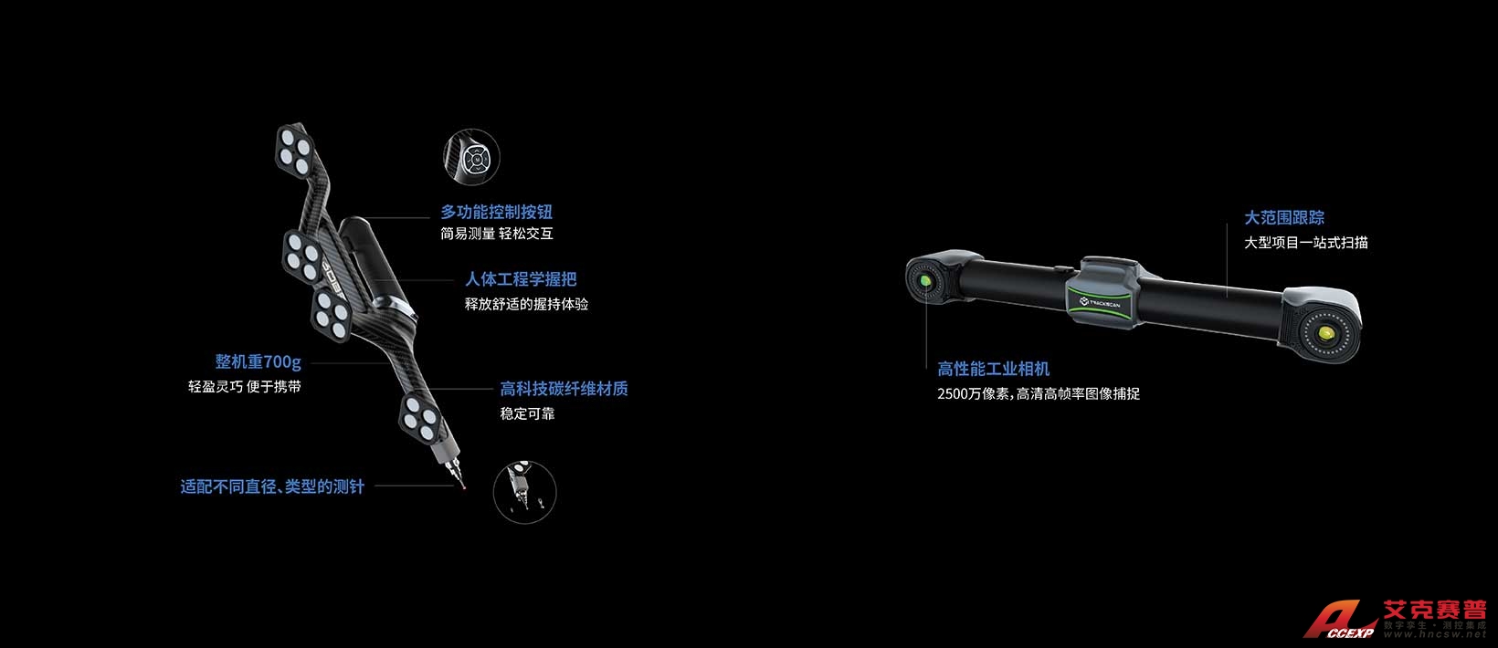 TrackProbe跟蹤式光筆測量系統,由手持測量光筆i-Probe和新一代光學跟蹤器i-Tracker組成,專為計量級精度測量量身打造。整個系統憑借其高精度、高便攜性和高易用性的特點,能輕松應對大范圍、遠距離及復雜嚴苛環境的測量需求。
