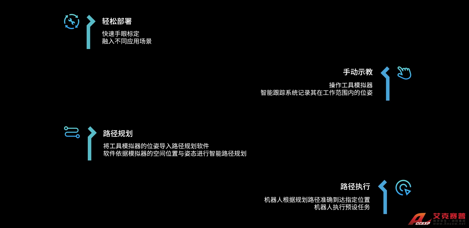通過智能跟蹤系統全面掌握工具模擬器在工作范圍內的空間位置與姿態,將其導入規劃引導軟件,快速規劃出機器人可立即執行的路徑,兼顧效率與安全。