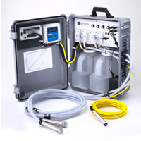 流量比例混合水采樣器裝在一個堅固、防雨的帶鎖攜帶箱內,包括聚乙烯廢水采樣瓶用于收集混合水樣、蠕動采樣泵、控制面板和可充電電池,以及進樣管和電池充電器??蛇x玻璃采樣瓶、便攜式冷卻器、便攜式冰袋容器等。