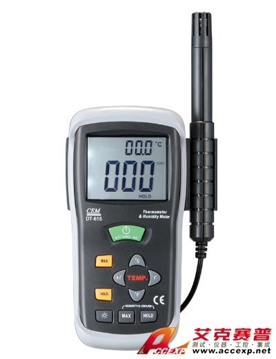 簡介:華盛昌CEMDT-625系列二合一專業(yè)溫濕度儀產(chǎn)品系列 DT-615/625/616CT專業(yè)溫濕度儀 本儀器可用于測量相對濕度,空氣溫度(用探頭),及K型熱電偶寬范圍測溫。超大、易讀的帶背光源液晶顯示屏含有雙重多種提示符。 華盛昌CEMDT...