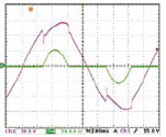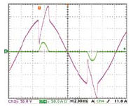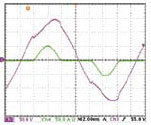 當(dāng)待測(cè)物有較大的輸出阻抗時(shí),如發(fā)電機(jī),若無自動(dòng)頻寬調(diào)整功能時(shí),電流波形會(huì)較不穩(wěn)定,如圖8所示。大部分的情況下,負(fù)載電流會(huì)產(chǎn)生震蕩并影響測(cè)試結(jié)果的準(zhǔn)確性。