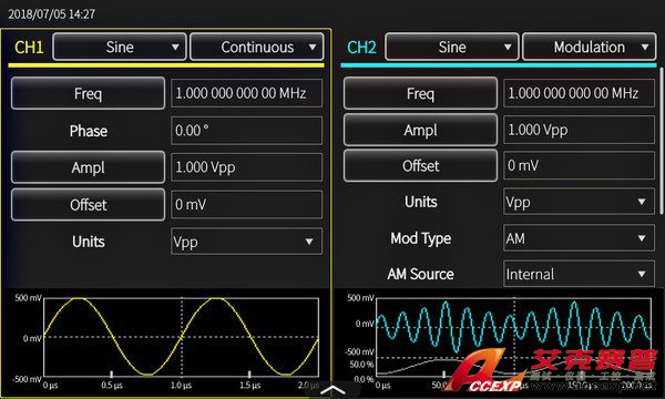 在基本模式下,AFG31000 生成傳統函數和任意波形。觸摸屏和前面板控制功能可以簡便地進行設置。