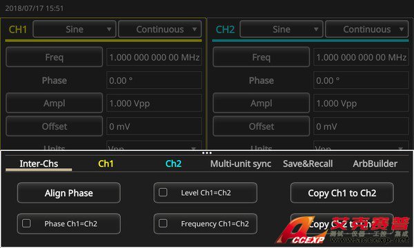 AFG31000 簡化了這個過程,它在屏幕上有一個向導工具,可以引導用戶完成電纜連接和設置配置,實現多臺發生器同步。