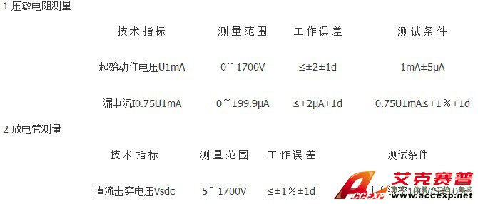適用于氧化鋅避雷器(壓敏電阻),金屬陶瓷二、三電極放電管、真空避雷管等過壓防護元件直流參數的測量。